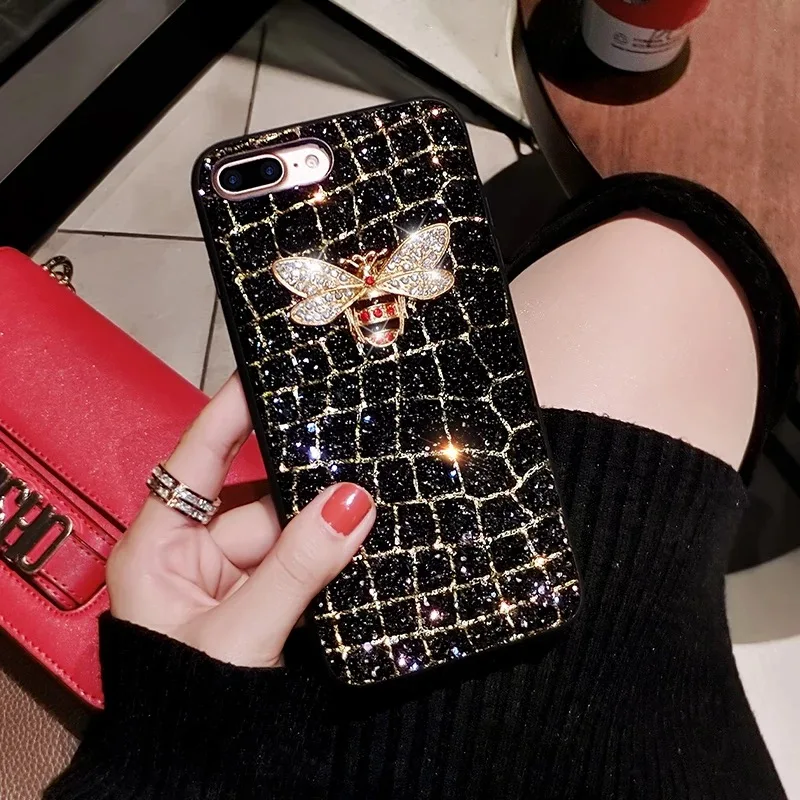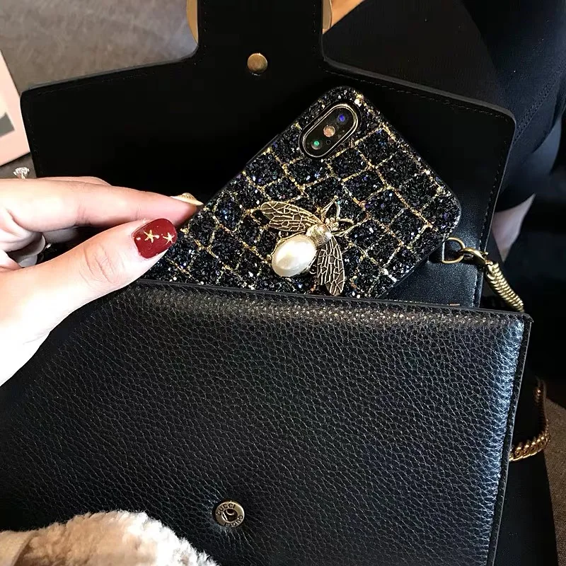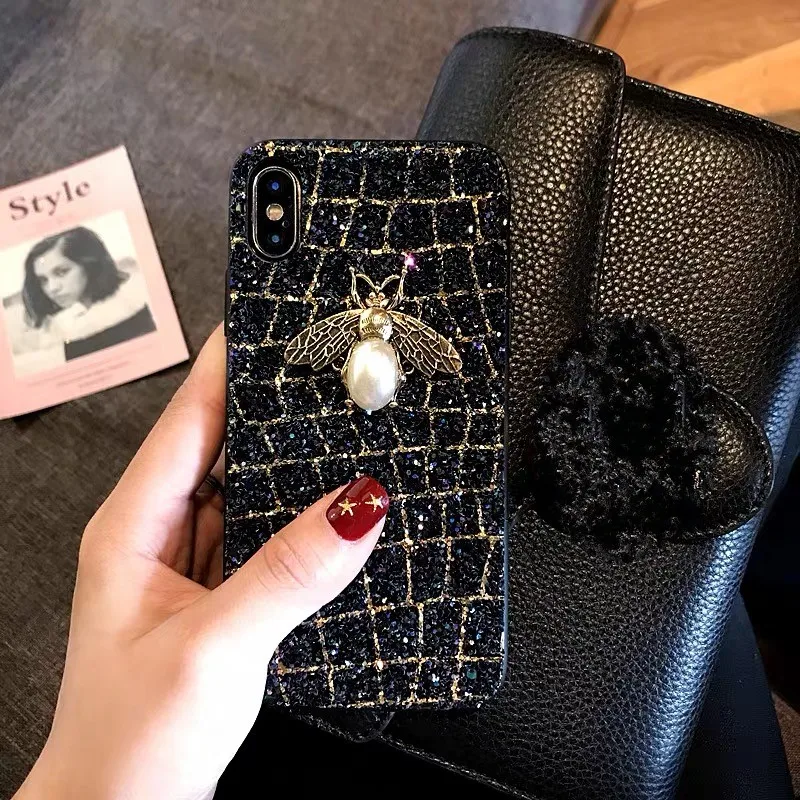 awesome Luxury Brand 3D Pearl Bee glitter hard case for iphone 5 s 6 7 8 plus X XS MAX XR cover for Samsung