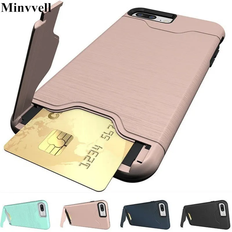 low cost Case For iPhone XS MAX XR 8 X 10 7 PLUS Brushed Hybrid Wallet Card Holder Kickstand Cover For iPhon