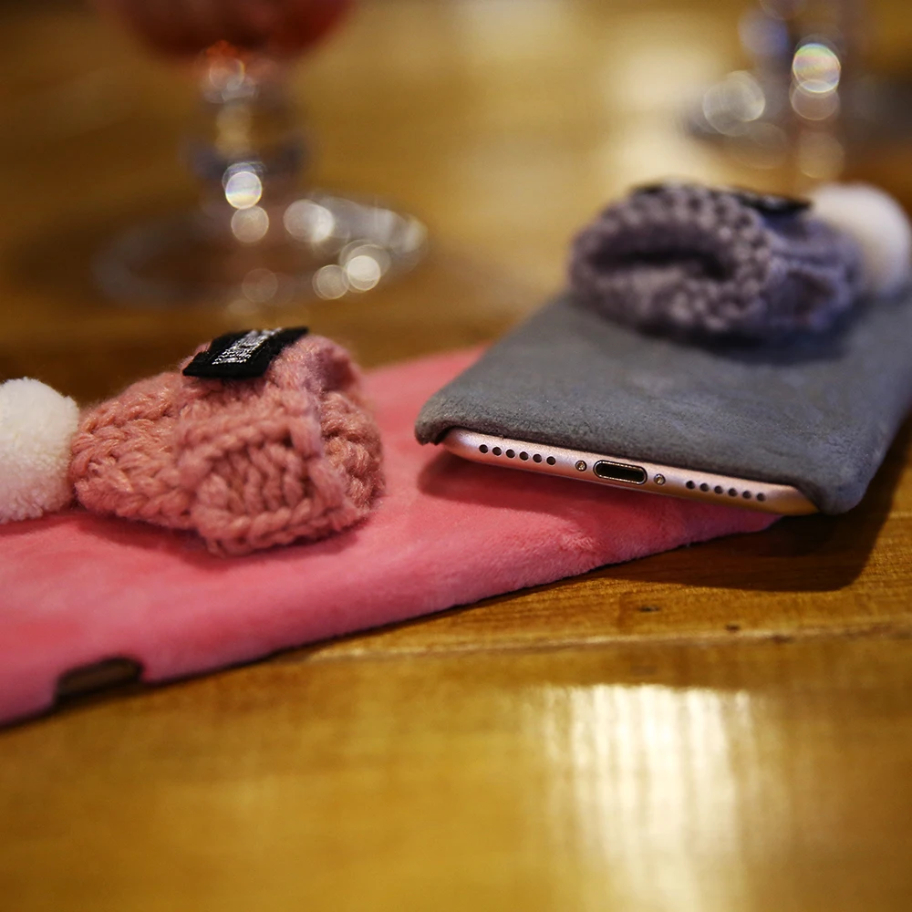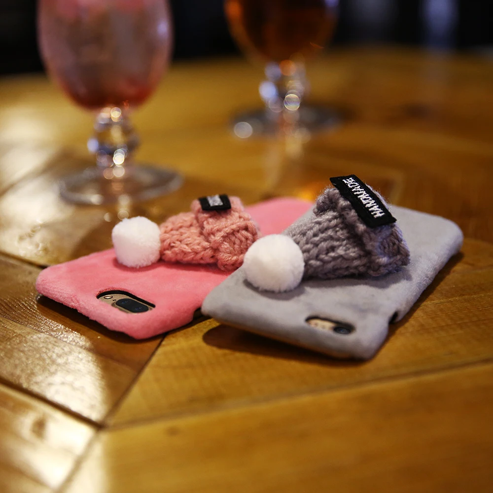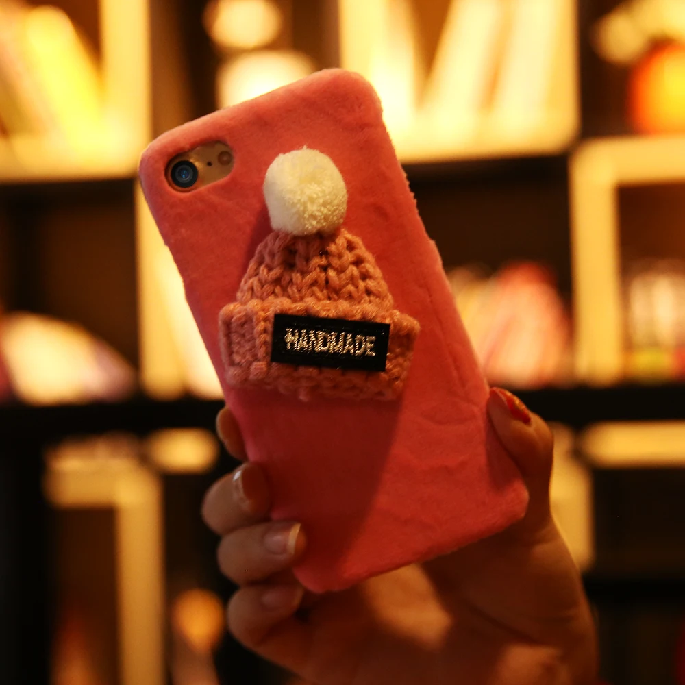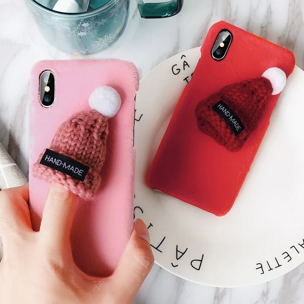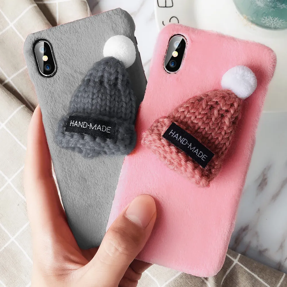 remarkable CASEIER DIY Hairy Hat Phone Case For iPhone X XS MAX XR Winter Warm Cases For iPhone 7 8 6 6S Plus