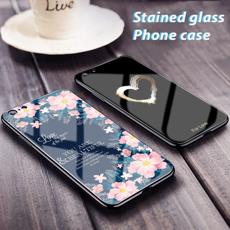 lower price Pattern Stained Tempered Glass Case For iPhone XR XS 11 Pro MAX X 7 8 Plus Cute Love Heart TPU Bump