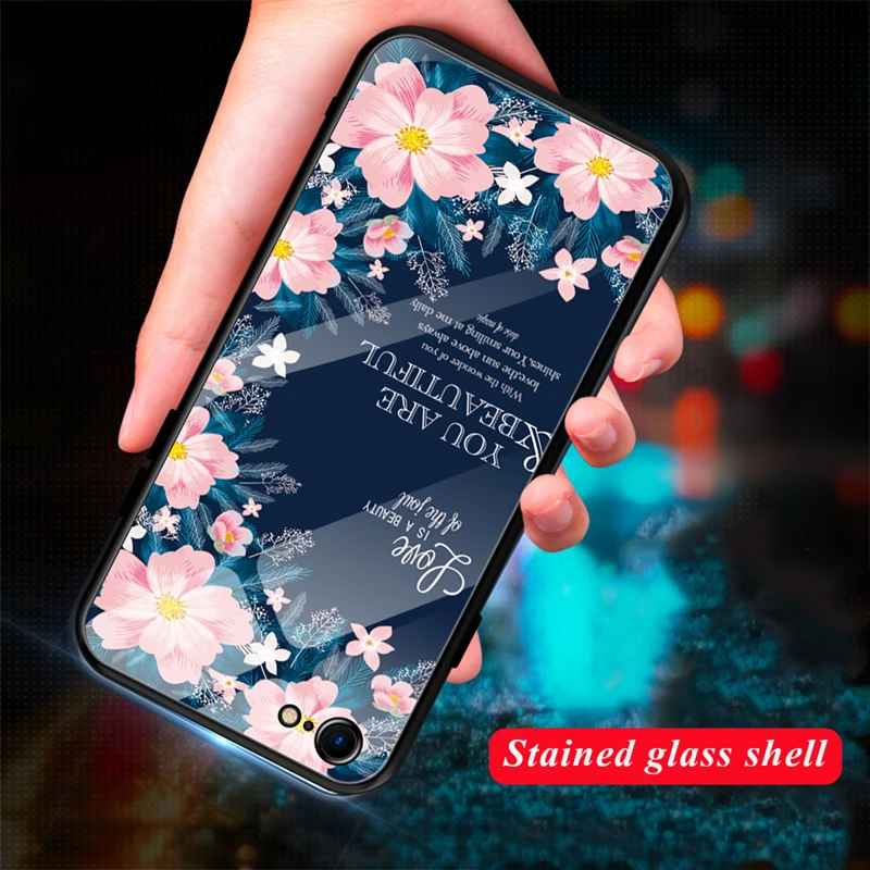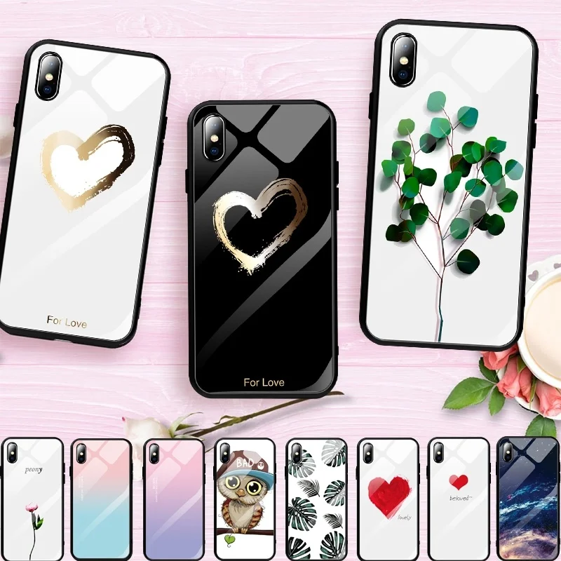 wonderful Pattern Stained Tempered Glass Case For iPhone XR XS 11 Pro MAX X 7 8 Plus Cute Love Heart TPU Bump